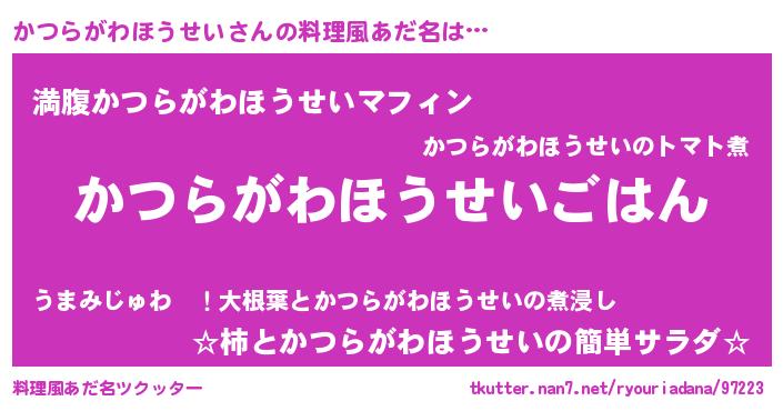 | ヘコむあだ名 | 『かつらがわほうせい(笑)』『つくし』 |