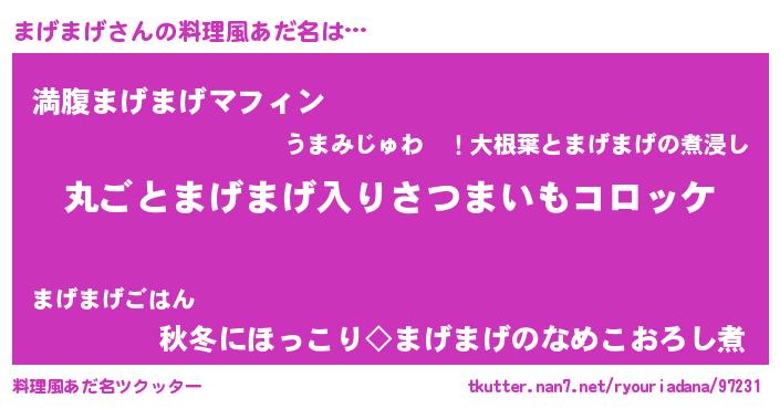 | ヒーロー風カッコイイあだ名 | 『仮面マゲダー』『ネオマゲマゲ』 |