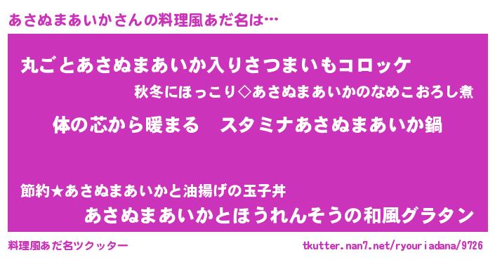 | 欧米人風あだ名 | 『あさぬまあいかクリステル』 |