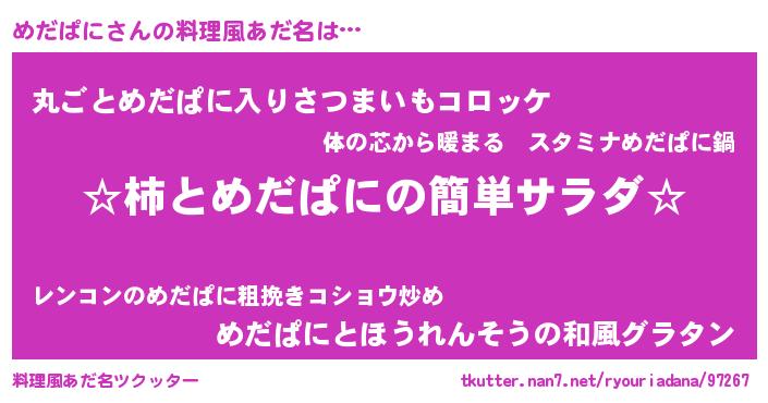 | ヒーロー風カッコイイあだ名 | 『仮面メダダー』『ウルトラめだぱにマン』 |
