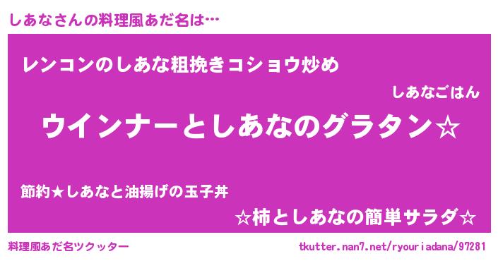 | 意味不明あだ名 | 『しあなフォーエバー』『自称しあな』 |