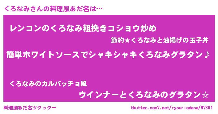 | 意味不明あだ名 | 『とにかく怪しいくろなみ』 |