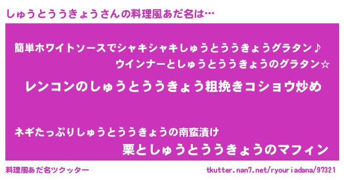 | ピコ太郎風あだ名 | 『シュ二郎』『ピシ二郎』『シコ太郎』 |