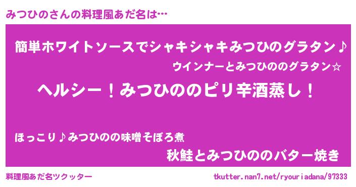 | 意味不明あだ名 | 『自称みつひの』『永久保存みつひの』 |