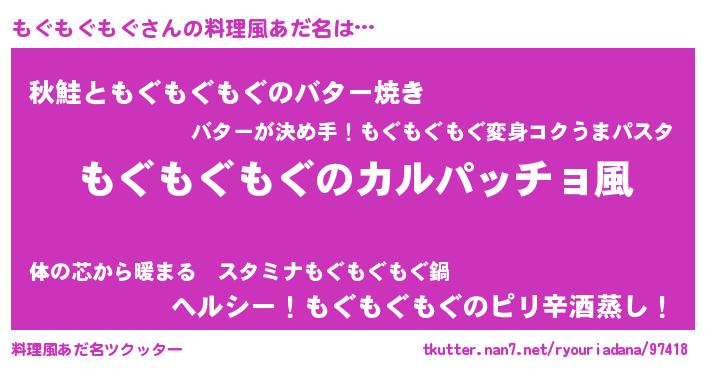 | ヒーロー風カッコイイあだ名 | 『仮面モグダー』『ネオモグモグモグ』 |