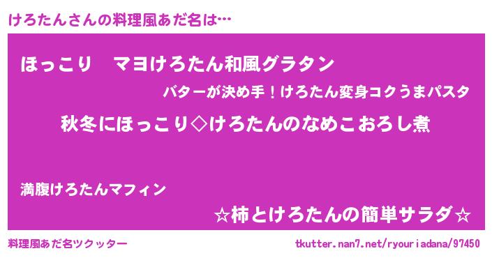 | 意味不明あだ名 | 『住所不定無職けろたん(9歳)』 |