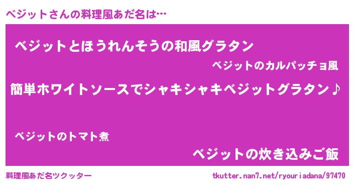 | ヒーロー風カッコイイあだ名 | 『炎刃騎士ベジ』『仮面ベジダー』 |