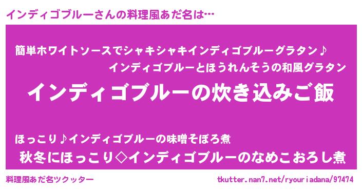 | 意味不明あだ名 | 『とにかく怪しいインディゴブルー』 |