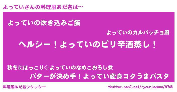| 男性向けラノベタイトル風あだ名 | 『Re:よっていから始める異世界生活』 |