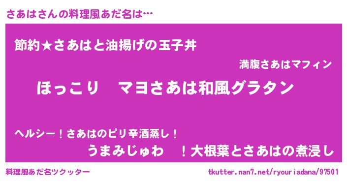 | 男性向けラノベタイトル風あだ名 | 『この素晴らしい世界にさあはを!』 |