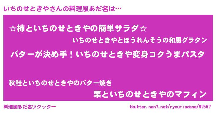 | ヒーロー風カッコイイあだ名 | 『愛の使者いちのせときや』 |