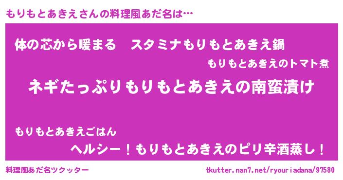 | ヒーロー風カッコイイあだ名 | 『スーパーモリモトアキエ』 |