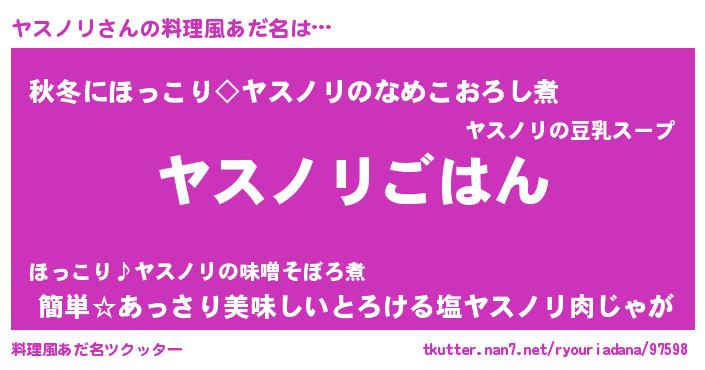 | 男性向けラノベタイトル風あだ名 | 『ヤスノリスレイヤー』『ヤスノリの憂鬱』 |