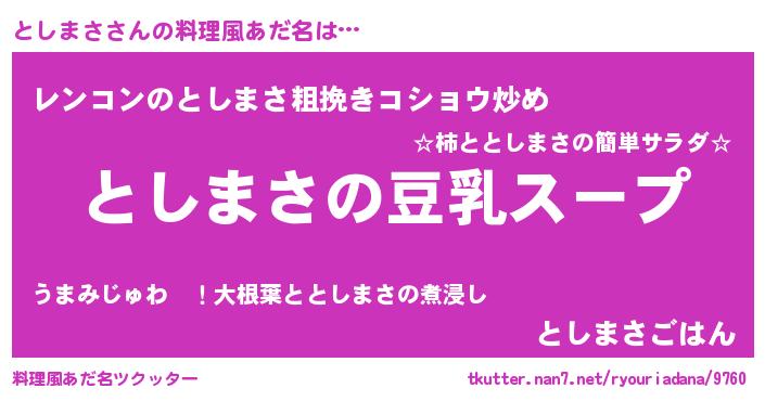 | 胡散臭い通販商品みたいなあだ名 | 『信頼と実績のサプリメント…その名も「としまさ」』 |