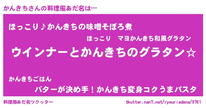 | 女子向けラノベタイトル風あだ名 | 『かんきち伯爵の花嫁』『かんきち恋絵巻』 |