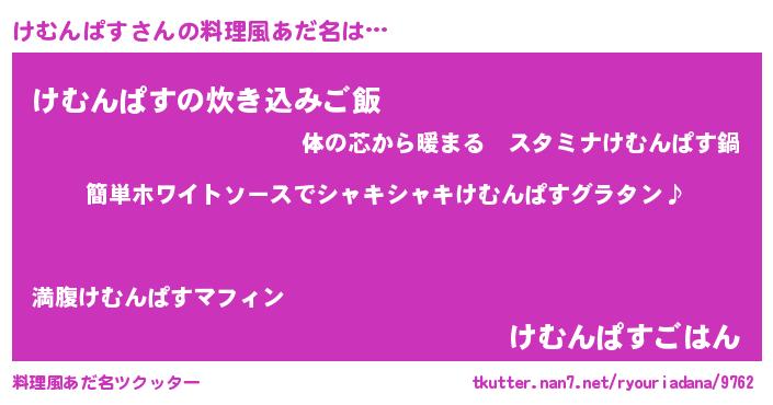 | 男性向けラノベタイトル風あだ名 | 『けむんぱすの嫁は女の子じゃないと思った?』 |