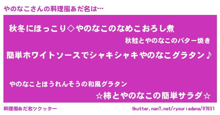 | ポケモン風あだ名 | 『ヒヤノナコ』『ヤノゴンZ』 |