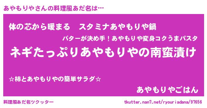 | ヘコむあだ名 | 『あやもー』『豆乳』『あやを』 |