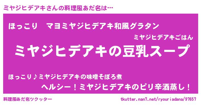 | 胡散臭い通販商品みたいなあだ名 | 『信頼と実績のサプリメント…その名も「ミヤジヒデアキ」』 |
