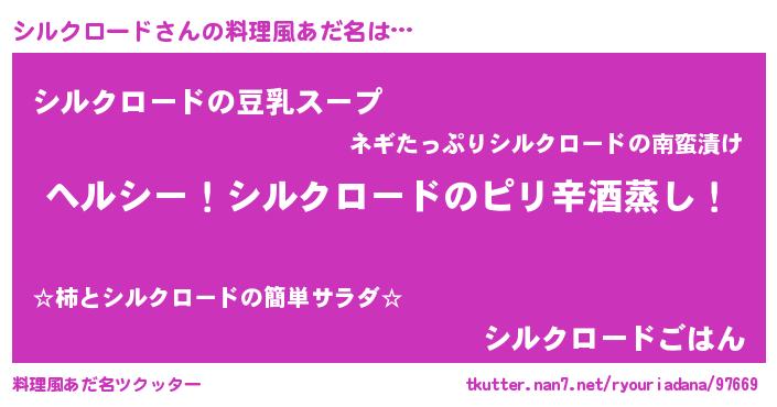 | 男性向けラノベタイトル風あだ名 | 『Re:シルクロードから始める異世界生活』 |