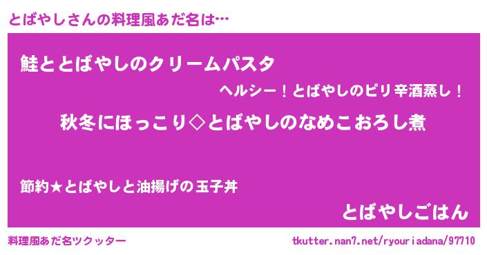 | ヒーロー風カッコイイあだ名 | 『慈愛の使者とばやし』『天弓騎士トバ』 |