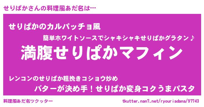 | ヘコむあだ名 | 『せりぱか(笑)』『せりお』『牛乳』 |