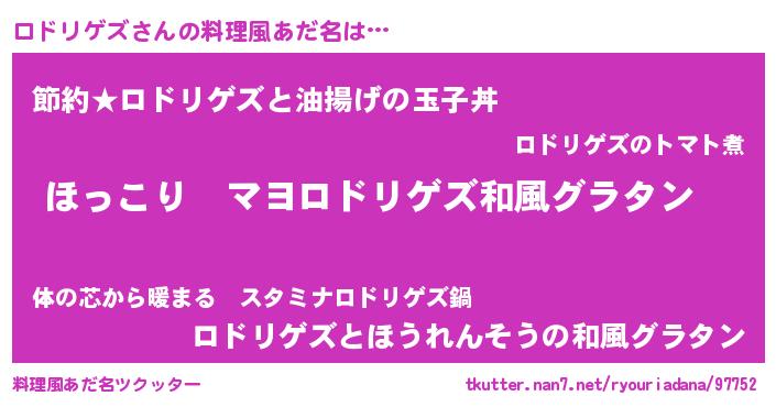 | 男性向けラノベタイトル風あだ名 | 『この素晴らしい世界にロドリゲズを!』 |
