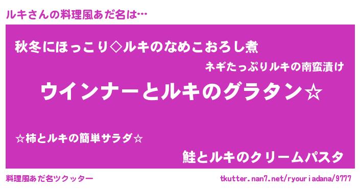 | 2回繰り返すあだ名 | 『ルルキキ』『ぽろぽろ』『ルキルキ』 |