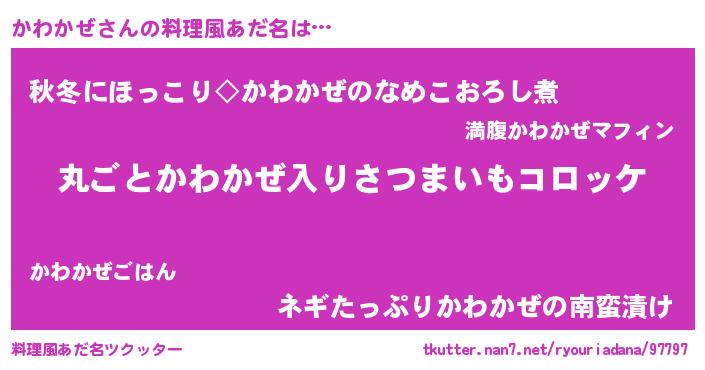 | 意味不明あだ名 | 『住所不定無職かわかぜ(56歳)』 |