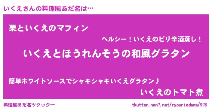 | ピコ太郎風あだ名 | 『イイ太郎』『イク六郎』『イコ十郎』 |