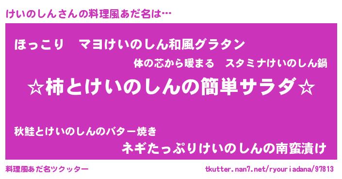 | 意味不明あだ名 | 『住所不定無職けいのしん(7歳)』 |