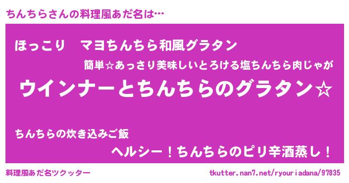 | ヒーロー風カッコイイあだ名 | 『ウルトラちんちらマン』『仮面チンダー』 |