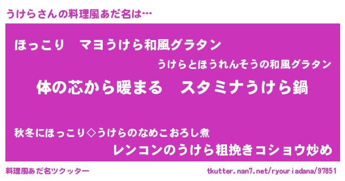 | ポケモン風あだ名 | 『ウケラダネ』『ウーケイ』 |