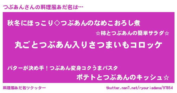 | 意味不明あだ名 | 『住所不定無職つぶあん(4歳)』 |