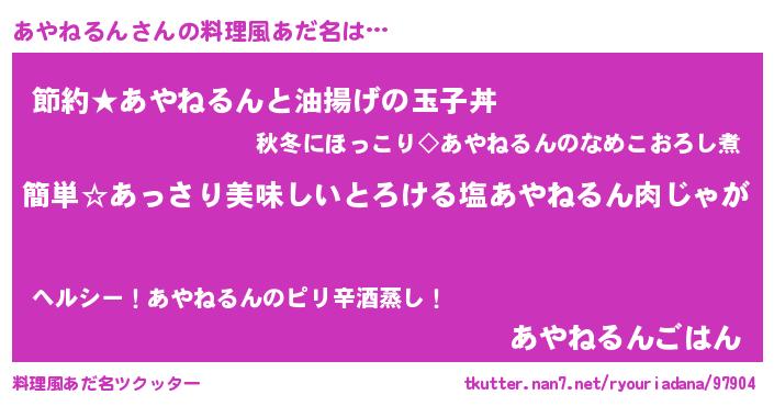 | ヒーロー風カッコイイあだ名 | 『ネオアヤネルン』『スーパーアヤネルン』 |