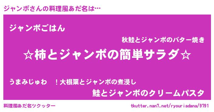 | 男性向けラノベタイトル風あだ名 | 『冴えないジャンボの育てかた』 |