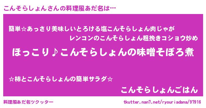 | 男性向けラノベタイトル風あだ名 | 『こんそらしょんの憂鬱』 |