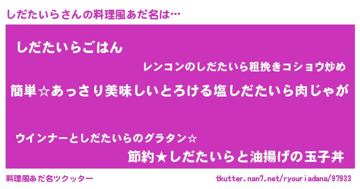 | ヘコむあだ名 | 『しだたいら(笑)』『しだにゅー』 |
