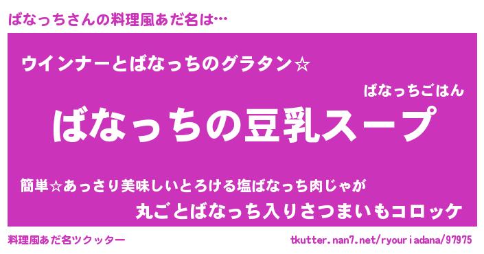 | 胡散臭い通販商品みたいなあだ名 | 『信頼と実績のサプリメント…その名も「ばなっち」』 |