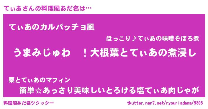 | 胡散臭い通販商品みたいなあだ名 | 『運命の人と巡り会える高級そうな皿…その名も「てぃあ」』 |