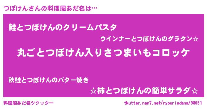 | 意味不明あだ名 | 『住所不定無職つぼけん(95歳)』 |