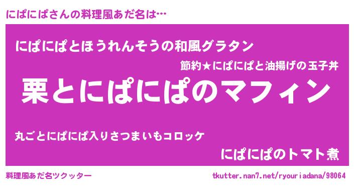 | ヒーロー風カッコイイあだ名 | 『正義の使者にぱにぱ』『仮面ニパダー』 |