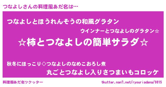 | ヒーロー風カッコイイあだ名 | 『仮面ツナダー』『ウルトラつなよしマン』 |