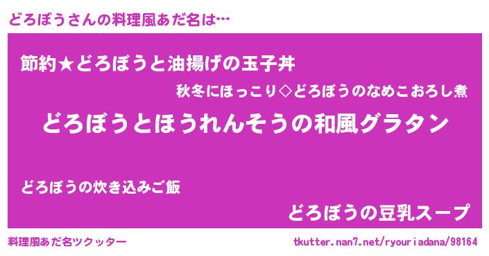 | 胡散臭い通販商品みたいなあだ名 | 『億万長者になれるブレスレット…その名も「どろぼう」』 |