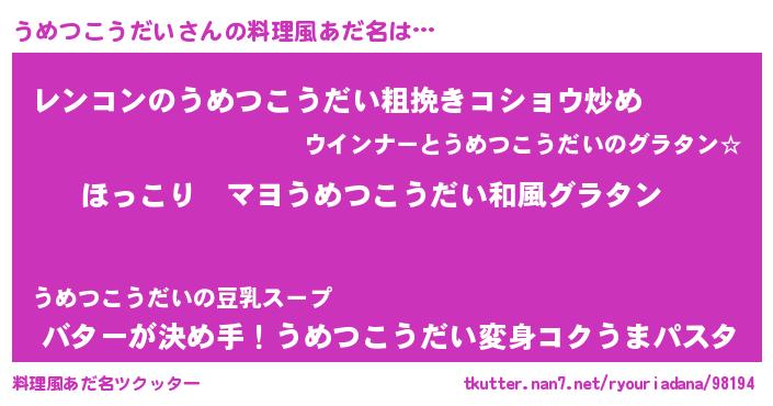| 恥ずかしいあだ名 | 『ウメツコウダイデラックス』『うめちん』 |