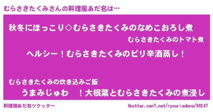 | 意味不明あだ名 | 『自称むらさきたくみ』 |