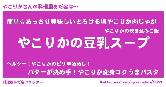 | 意味不明あだ名 | 『とにかく怪しいやこりか』 |