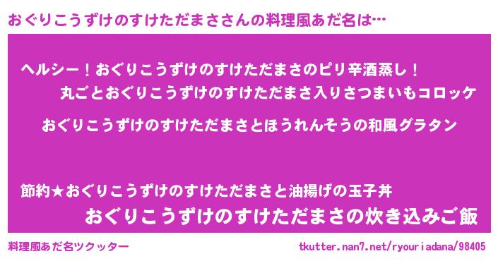 | 男性向けラノベタイトル風あだ名 | 『おぐりこうずけのすけただまさ~年齢イコール彼女いない歴の魔法使い~』 |
