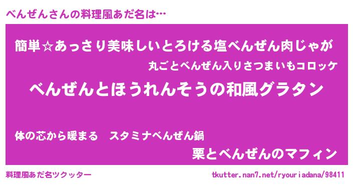 | ヘコむあだ名 | 『べんぜん(笑)』『酢こんぶ』 |