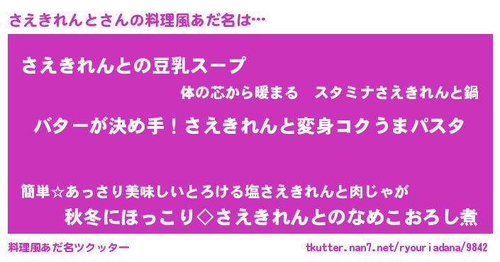 | ヘコむあだ名 | 『さえぷりん』『牛乳』『さえもー』 |